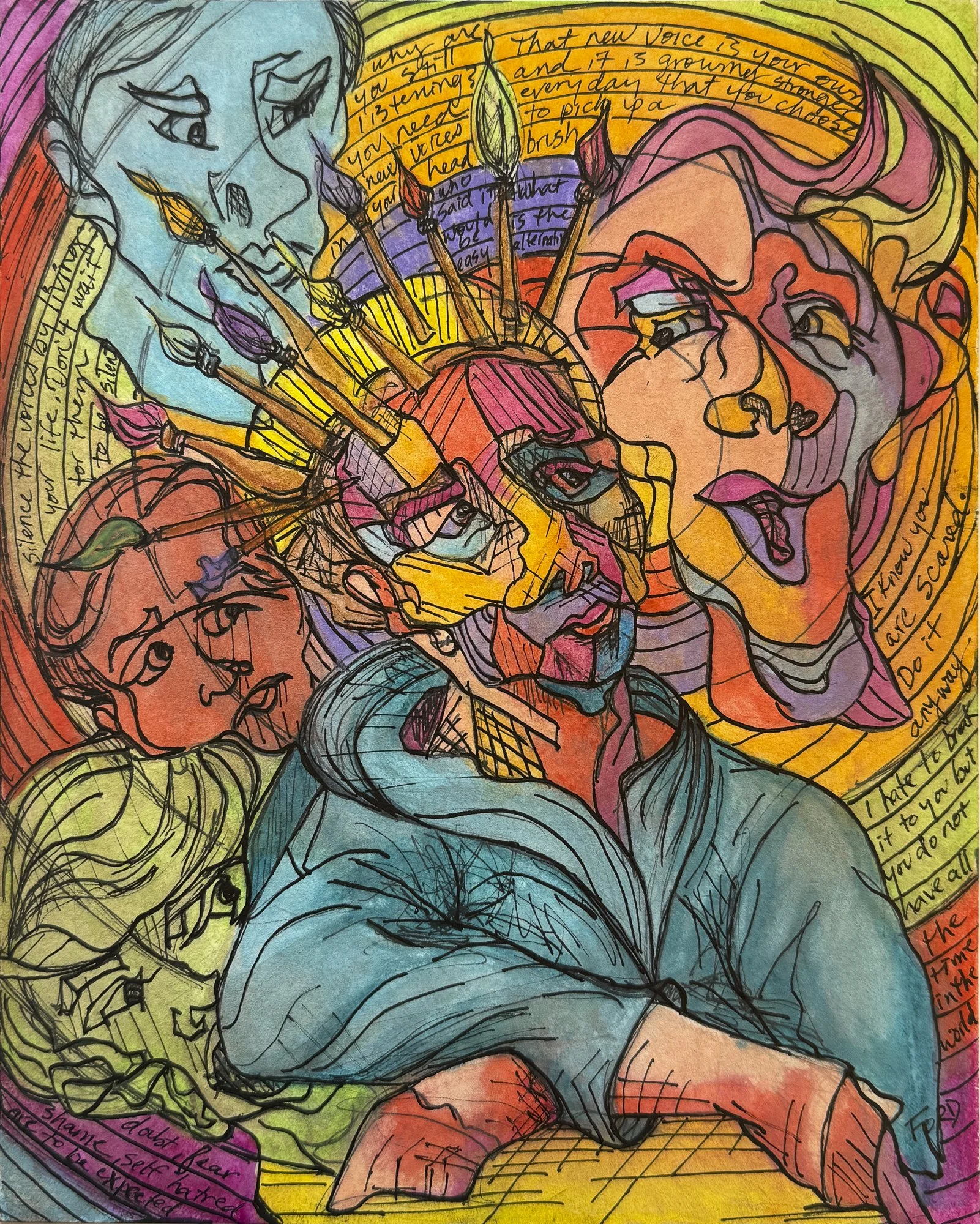 Known for her vivid portrayals of the human figure, Amy Ford has honed her craft since a transformative encounter with figure drawing under Silvestro Pistolesi in Florence in 2001. Balancing motherhood to five children with studies under artists like Joan Pereira and Charles Sovek, she transitioned to a full-time studio practice in 2018. Her work, marked by intense color, dynamic brushwork, and a signature dark line, infuses dreamlike portraiture with psychological resonance and narrative depth.