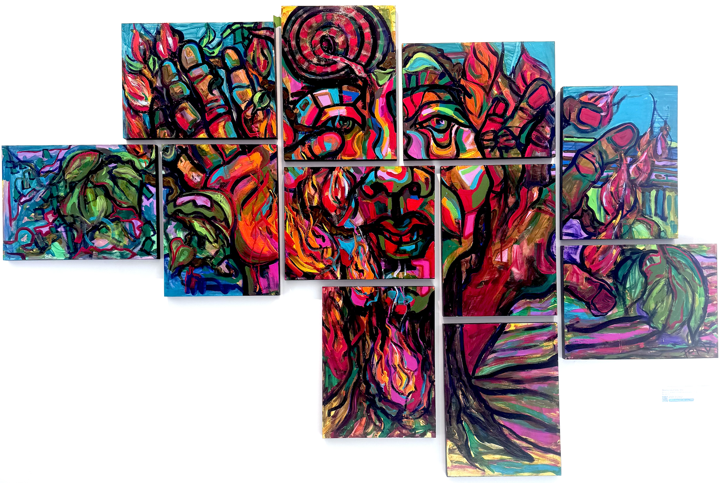 Icons explores humanity’s instinct to revere idols—saints, celebrities, gods, influencers, and totems—blending religious iconography, pop culture, and personal mythology. “We are creatures of devotion,” Ford says. “This work examines our need to elevate figures and symbols. These idols are not passive—they challenge us to question: Who gave me this power? What do you see in me? What are you worshipping?”
